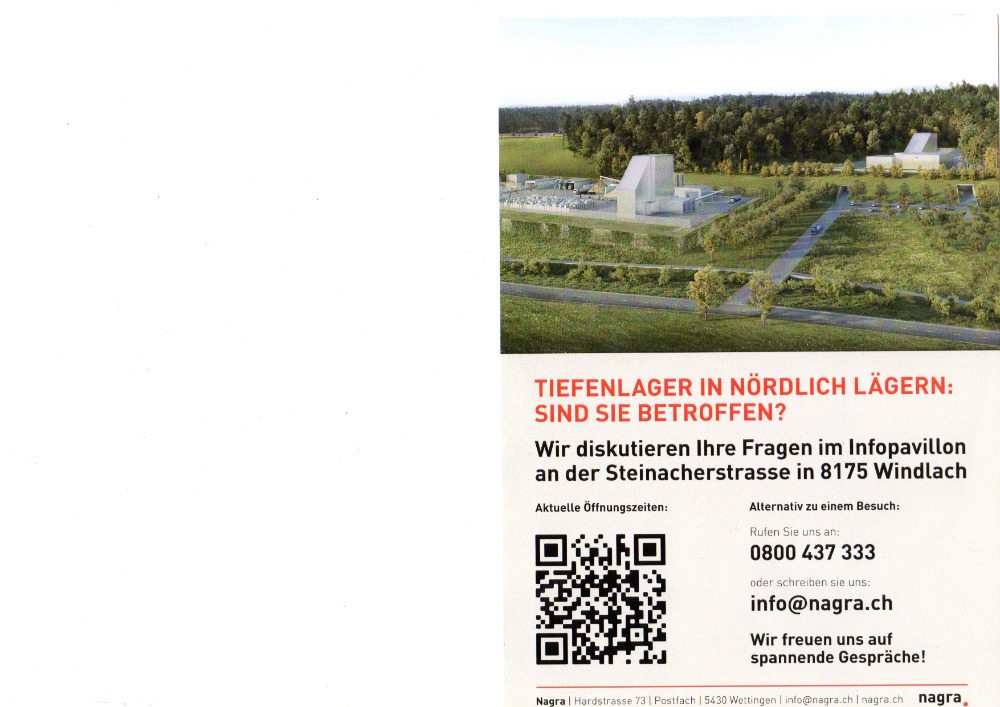 Das einmal geplante CH-Atom Endlager mit Zugansstollen wird auch die folgende OL Karte einmal beieinflussen. Als effektives dauerndes "Sperrgebiet" jedoch ab ca. Jahr 2028 / 2030, nachdem das ENSI und der Bundesrat das Planungsverfahren der Nagra genehmigt haben wird, wird dann ein erster Test Sondierstollen gebaut, gemäss heutigem Gespräch mit ENSI Chef Felix Altorfer....