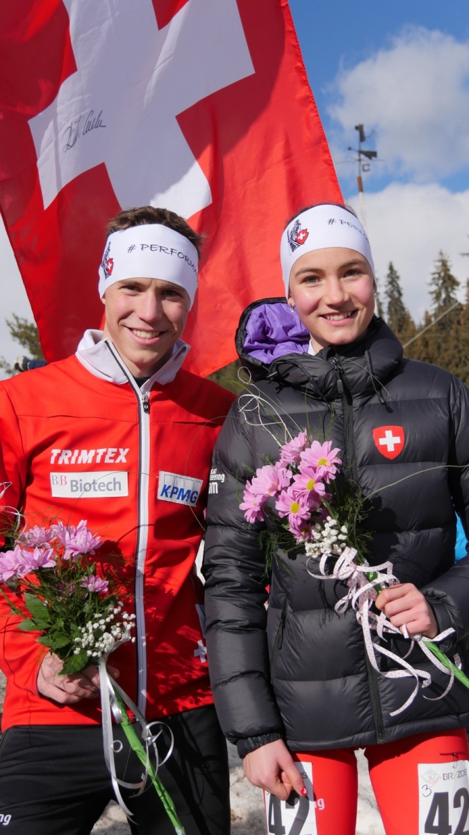 Nicola Müller (links) und Alina Niggli (rechst) an der Mitteldistanz der Junioren-WM und Jugend-EM in Velingrad (Bulgarien), 05.02.2018 (Foto Christian Aebersold)
