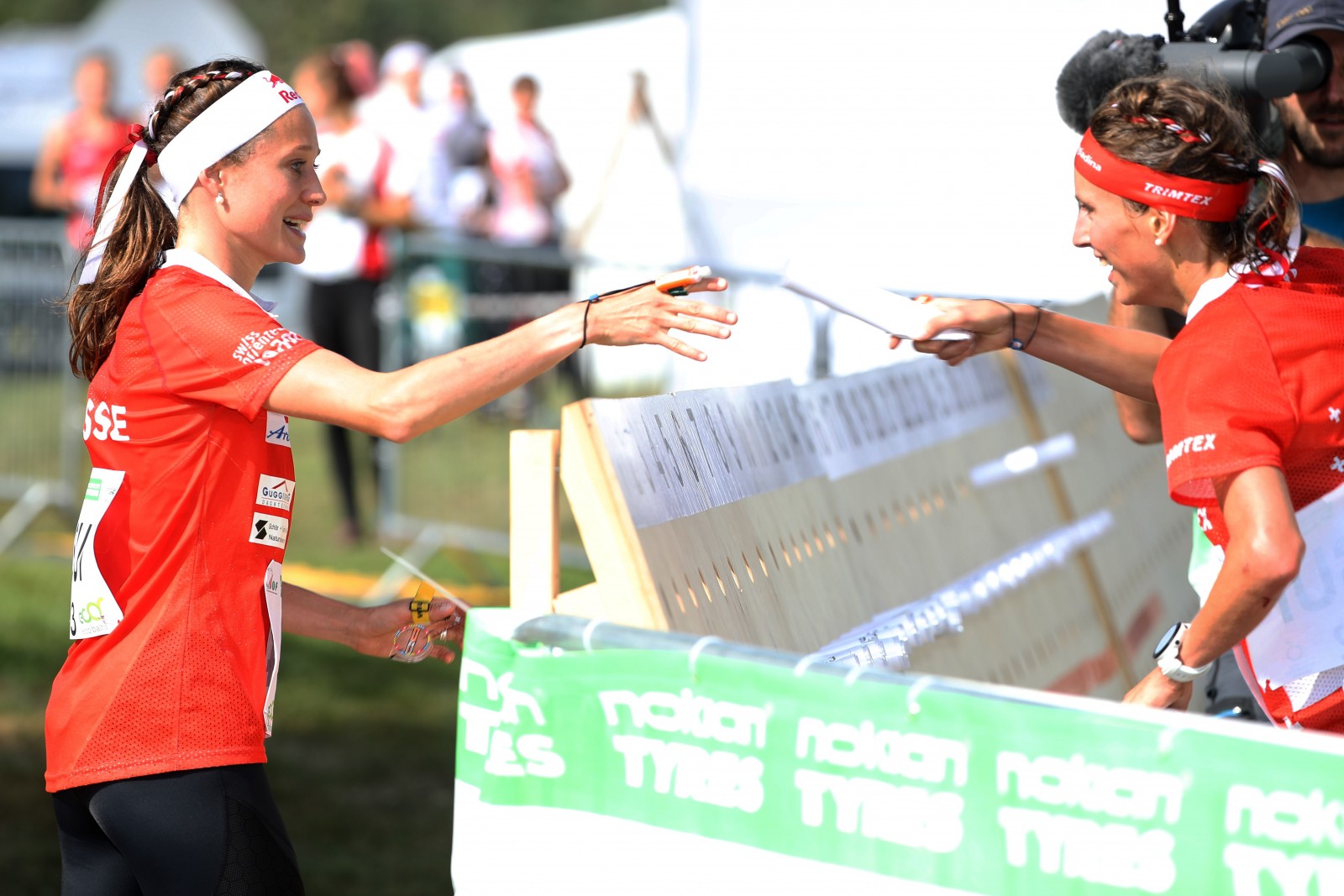 • SIGULDA/LATVIA, 09.08.2018 - Elena Roos handing over to Julia Jakob (SUI) captured during the Relay at the World Orienteering Championships WOC 2018 in Sigulda (Latvia). copyright by www.steineggerpix.com + Swiss Orienteering / photo by remy steinegger #woc2018 #swissorienteering #orienteering #steineggerpix.com