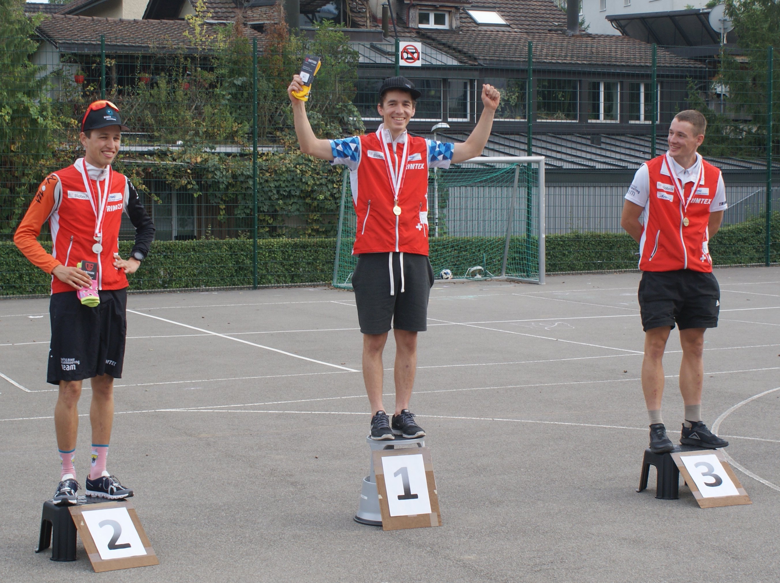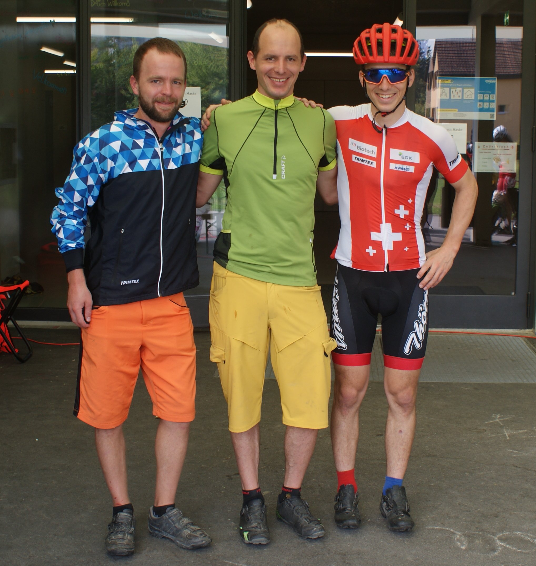 Dabei gelang Adrian sein Debut als Bahnleger sehr gut, legte er doch im für den Bike-OL idealen Gelände der Karte Neuburg interessante und herausfordernde Bahnen mit kniffligen Routenwahlproblemen. Laufleiter Simon Brändli, welcher als Favorit bei den Herren Elite gehandelt wurde, musste seinem doppelten Engagement zu Beginn ein wenig Tribut zahlen: durch die Mehrfachbelastung fehlte ihm zu Beginn des Laufes ein wenig die sonst übliche Konzentration und er hatte Mühe, ideal in den Lauf zu finden. Durch seine Routine bekam er die anfänglichen Unsicherheiten aber gut in den Griff und konnte sich letztendlich mit über drei Minuten Vorsprung auf Adrian Jäggi (Lohn-Ammannsegg) doch recht deutlich durchsetzen. Jäggi anerkannte dabei neidlos die momentane Stärke von Brändli, sieht aber seine Entwicklung als fortlaufenden Prozess und hofft, seinem Konkurrenten eines Tages überflügeln zu können. Mit Silas Hotz aus Schafisheim erreicht der Aufsteiger der beiden letzten Jahre, den dritten Rang. Sein Rückstand war mit neun Minuten allerdings schon beträchtlich. Damit wiederholte sich das Podest des Biberister-Bike-OLs von Ende Juni, nicht nur hinsichtlich der Reihenfolge, auch die Rückstände beliefen sich im gleichen Rahmen.