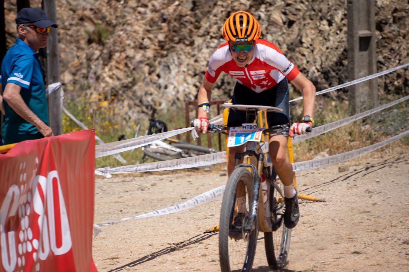 In der Juniorenkategorie war es heute erneut kein Schweizer Tag. Gestern noch frustriert über viele kleine und grössere Fehler, beschrieb Flurin Schnyder heute schon wieder niedergeschlagen ein Rennen, das überhaupt nicht nach seinen Vorstellungen verlief. Sein Kopf und seine Beine wären heute offenbar durchaus bereit gewesen eine absolute Bestleistung zu zeigen. Jedoch stellte Schnyder bereits vor dem zweiten Posten erschrocken fest, dass er in einem Downhill wohl sein Bidon verloren hatte. Ein besonderes Pech für Schnyder, der mit der portugiesischen Hitze besonders fest zu kämpfen hat. Der Nachwuchsathlet bewies daraufhin seine mentale Stärke und kämpfte weiter, halt ohne Erfrischungsmöglichkeit. Einige Posten später ereilte ihn das Pech aber schon wieder. In einer Abfahrt schlitzte er sich seinen Reifen auf. Wertvolle Zeit musste er für das Flicken des Defektes aufwenden. Trotz all seiner Mühe wollte der Schlitz nicht mehr richtig abdichten und Schnyder sah sich gezwungen, die nächsten 3 Posten bis zur Zuschauerpassage mit halb-plattem Hinterreifen zu bestreiten. Sein Tempo musste er dabei deutlich drosseln, insbesondere in den Kurven. In der Technik-Zone der Zuschauerpassage konnte Schnyder dann endlich ein Ersatzrad nehmen - und eine neue Trinkflasche. Der Kämpfer fuhr das Rennen danach ohne weitere Pannen fertig. Mit der verlorenen Zeit des Flickens reicht es Schnyder auf den siebten Rang. Ohne Defekte wäre heute womöglich ein Podestplatz möglich gewesen.
