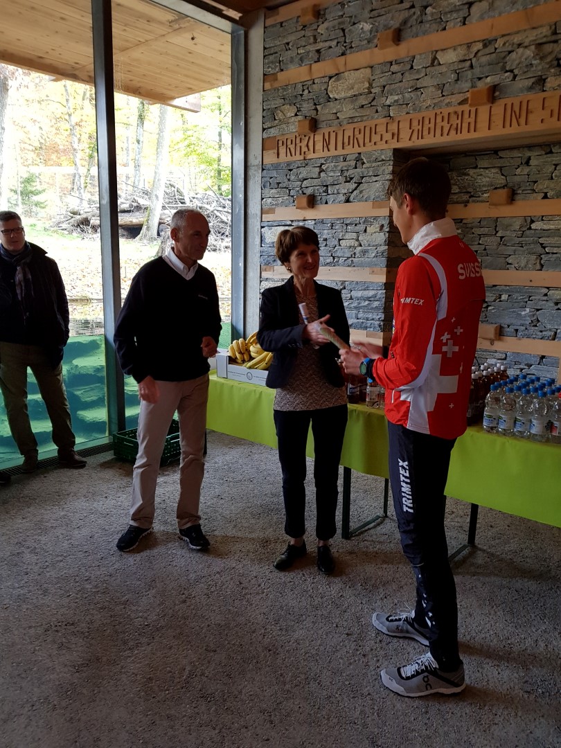 Bei strahlendem Sonnenschein wurde der Swiss-O-Finder Bern im Bären-Waldhaus im Tierpark Dählhölzli, wo vier OL-Posten montiert sind, eröffnet. Der Gründervater des Swiss-O-Finders, Jürg Hellmüller als Präsident von Swiss Orienteering übergab mit Matthias Kyburz der Gemeinderätin und Sportdirektorin der Stadt Bern, Franziska Teuscher, symbolisch die erste OL-Karte des Swiss-O-Finders Bern. „Ich bin begeisterte Joggerin und beschäftigte mich früher als Biologin auch intensiv mit Karten, von daher freue ich mich sehr auf meinen ersten OL in der Stadt Bern", erklärte Franziska Teuscher vor den Medien und Gästen. Bern sei eine attraktive Stadt mit viel Lebensqualität und Bern sei auch eine Stadt, die wächst. „Da braucht es auch neue, interessante Sportangebote; darunter „auch Angebote, die auf ein urbanes Publikum sowie auf den Tourismus ausgerichtet sind. Und gerade junge Leute sind neugierig und probieren gerne Neues im öffentlichen Raum aus", so Teuscher weiter. Jürg Hellmüller ist glücklich, dass der OL-Sport nun auch in der Bundeshauptstadt mit einem fixen Postennetz erlebbar gemacht wird: „Die Region Bern hat nebst der Region Zürich am meisten OL-Mitglieder und ist eine sportbegeisterte Stadt. Nach dem erfolgreichen Pilotprojekt in Arosa und der Eröffnung in Aarau vor einem Jahr sind wir froh, nun auch in Bern präsent zu sein," so Hellmüller. Nach der Begrüssung lief Matthias Kyburz mit einer Schulklasse die Bahn ab. „Der Swiss-O-Finder ist eine attraktive Einstiegsmöglichkeit, um erste OL-Erfahrungen sammeln zu können und sich in der Natur zu bewegen, die Kids hatten Spass", so Kyburz.