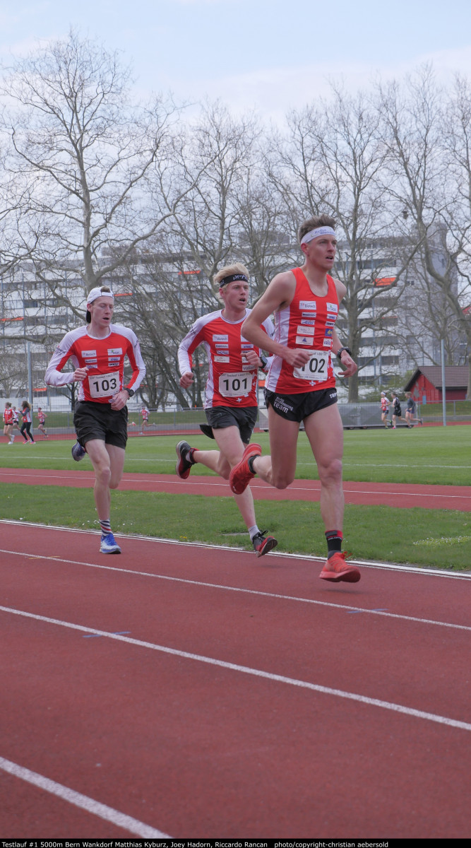 Die schnellste Laufzeit und auch gleich eine persönliche Bestzeit erreichte heute Matthias Kyburz mit einer Zeit von 14:27 Minuten. Er lief den Grossteil des Rennens zusammen mit Joey Hadorn, konnte aber am Schluss noch etwas zulegen. „Mit dieser Leistung habe ich ein sehr positives Feedback für diesen ersten Testlauf erhalten und damit bin ich sehr zufrieden", bilanziert Matthias Kyburz. Nach Joey Hadorn auf dem zweiten Rang mit einer Laufzeit von 14:34 Minuten, folgte Riccardo Rancan, welcher die 5000 Meter in 15:06 Minuten absolvierte. Ihre persönliche Bestzeit verbessern konnten neben Matthias Kyburz auch Fabian Aebersold und Reto Egger.
