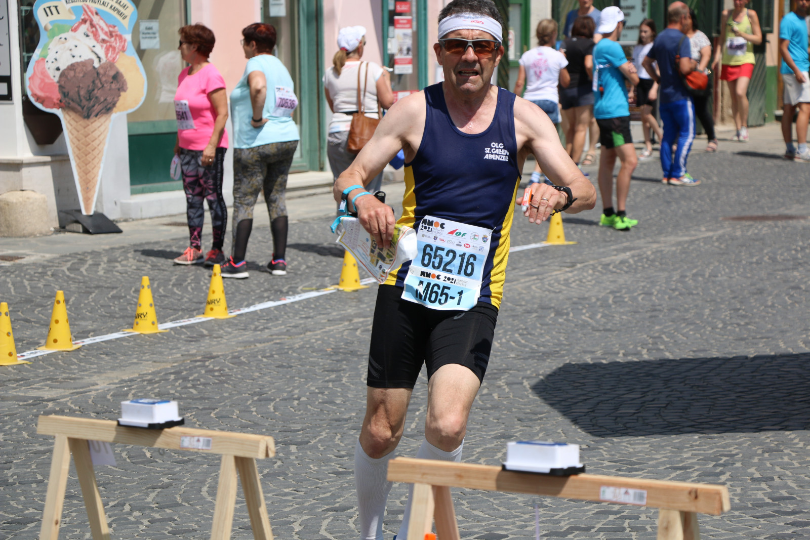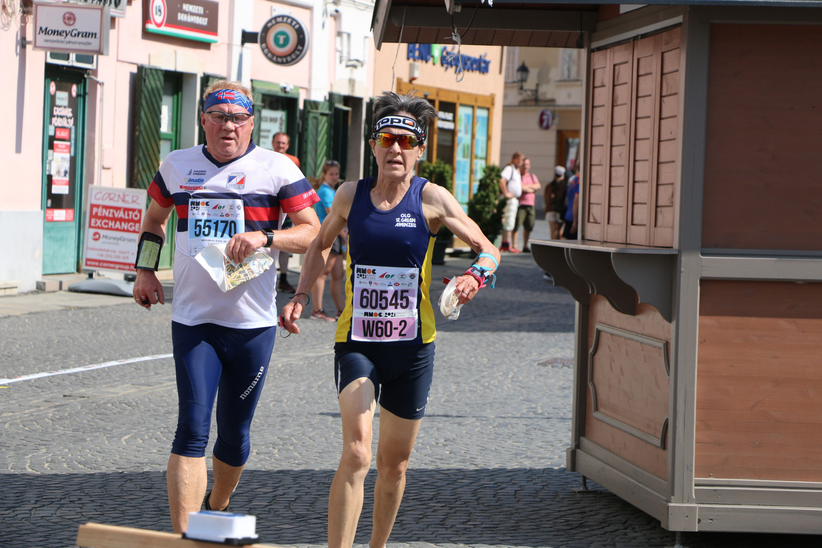 Bei den Damen war die Zahl der Medaillenanwärterinnen klar geringer. Die besten Chancen hatte Monika Ammann bei W60. Sie hätte vor 2 Jahren in Lettland zum dritten Mal gewonnen. Der Lauf wurde damals aber nicht gewertet. Ammann packte in Ungarn jetzt ihre nächste Chance. Sie fiel nach einem grossen Fehler zwar auf Zwischenrang 13 zurück, war bei der Zielpassage als 6. immer noch im Hintertreffen, konnte im Schlussteil aber auftrumpfen. Alle Bahnen führten dort in einen Innenhof mit mehreren Posten. Da musste man kühlen Kopf bewahren, zumal der Bahnaufdruck – wie schon am Vortag gesehen – besser hätte sein können.