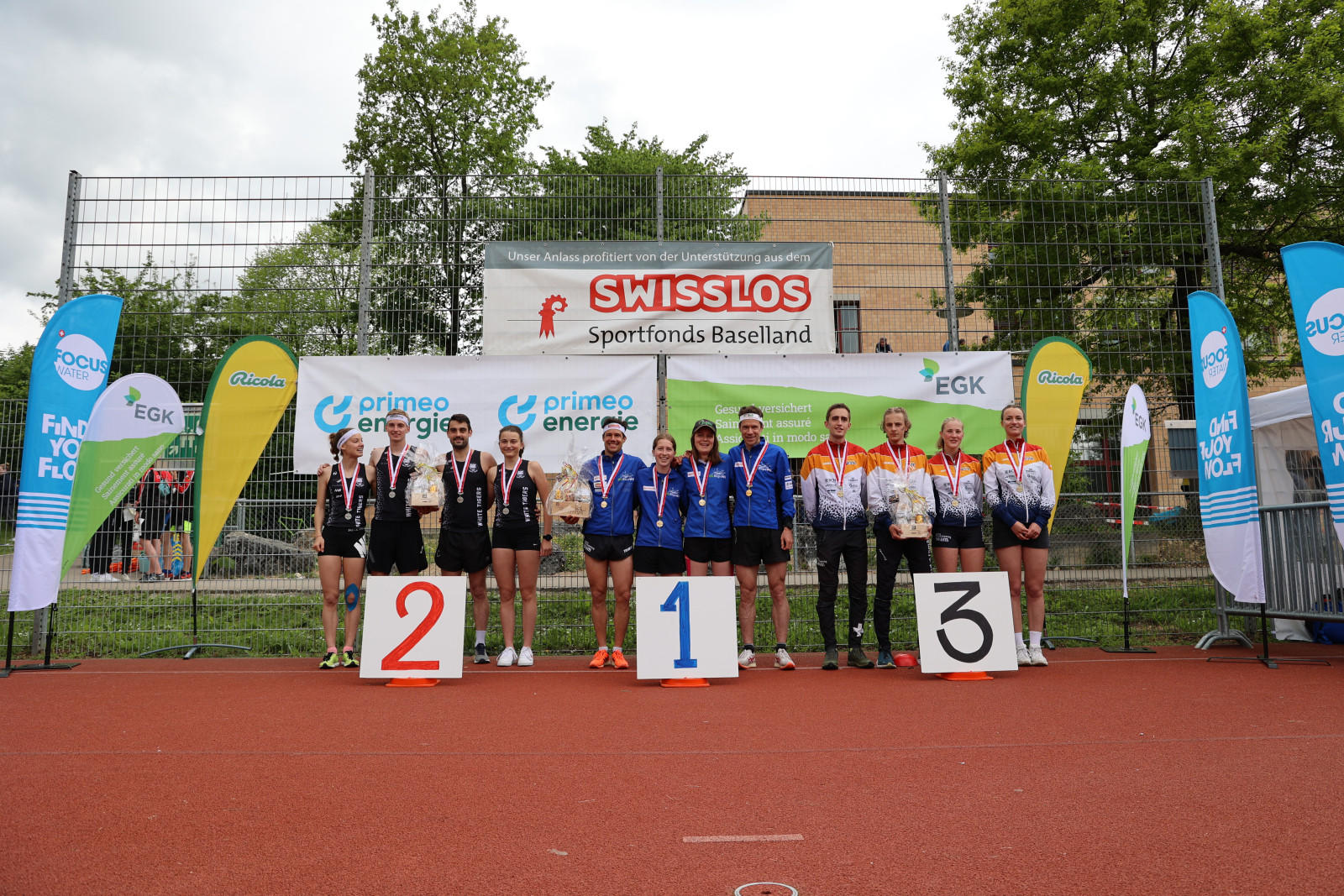 Silber geht an das Team der ol.biel.seeland mit Aline Schmuki, Silvan Ullmann, Fabian und Simona Aebersold. ANCO 2 mit Alina Niggli, Loïc Berger, Pascal Buchs und Inès Berger läuft nur sechs Sekunden hinter ol.biel.seeland zur Bronzemedaille. Einige Teams mit Medaillenchancen, wie etwa die ol norska oder die OL Zimmerberg, konnten aufgrund von falschen Posten am Ende nicht mehr um die Medaillen mitkämpfen.