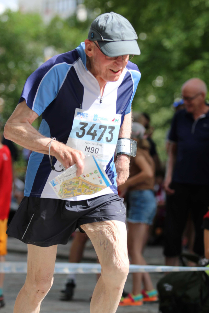 Bereits am Vortag war das Paarvo Nurmi Stadium der perfekte Rahmen für den Qualifikationslauf. Die grosse Beteiligung ergab bei einigen Kategorien mehr Startfelder als sonst. Üblicherweise starteten diese «Heats» gestaffelt und auf identischen Bahnen. In Turku waren die Kategorien parallel am Start. Aufgrund der Ergebnisse vom Samstag, aber auch aufgrund des Rénommée kamen weitere Namen für eine Medaille in Frage. Baptiste Rollier (M40) ging als «Masters-Neuling» an den Start. Er belegte in der Quali Rang 2 und im Final Rang 4. Vor ihm sind mit Oystein Kvaal Osterbo (NOR) und Marten Bostrom (SWE) frühere OL-Grössen klassiert. Auch der Sieger aus Finnland hat Weltcup-Erfahrung. Das unterstreicht den Stellenwert der Senioren-WM. Stefan Bolliger und Lukas Jenzer (beide M60) belegten im gleichen Vorlauf die Ränge 1 und 2. Reto Müller kam in einem anderen Vorlauf auf Rang 9. Am Sonntag büsste Stefan Bolliger beim «einfachen» Posten 3 viel Zeit ein, konnte aber auch sonst läuferisch nicht mithalten. Lukas Jenzer lief zweimal nicht optimal und konnte den Rückstand nicht mehr wettmachen. Als Vierter trennten ihn 16 Sekunden von der Bronzemedaille. Reto Müller wurde mit 4 Sekunden Rückstand auf Jenzer Fünfter. Er verpasste eine bessere Platzierung auf der längsten Teilstrecke mit Routenwahl hinauf auf den Uni-Hügel. Bei M65 erreichten in ihren Heats auch Guido Rhyn (2.), Willi Müller (4.), Martin Sacher (4.) und Gila Poltera (6.) einen Top-Ten-Platz. Im Final verpasste Guido Rhyn eine Klassierung. Martin Sacher und Willi Müller fielen knapp aus den ersten Zehn. Bei M70 kam Francesco Guglielmetti am Samstag auf Rang 2, Jean-Pierre Müller auf Rang 4 und Alain Juan sowie Hansruedi Kohler auf die Ränge 10 und 11. Am Sonntag bestätigte Jean-Pierre Müller als Siebter seine Leistung auf eindrückliche Art und Weise. Noch besser klassierte sich Hansruedi Kohler als Sechster. Auch Francesco Guglielmetti brachte die verlangten Postenquittungen nicht vollständig ins Ziel. Das Gleiche gilt für Franz Wyss (M75) und Vierter in seinem Vorlauf vom Samstag. Zu den Geschlagenen gehört Jean-Claude Guyot (M75), ebenfalls Vierter in einem anderen Vorlauf. Er war am Sonntag bei mehreren Teilstrecken bei den Schnellsten, nicht aber bei der eigentlichen Schlüsselstelle für sehr viele Kategorien. Rang 5 mit 50 Sekunden Rückstand auf den Sieger und 20 Sekunden auf Rang 3.