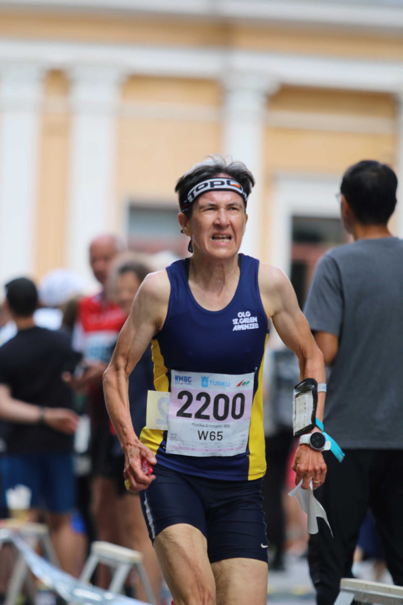 Der Dom von Turku war eine stimmungsvolle Kulisse für die Arena vom Sprint-Final in der Innenstadt. Gleich angrenzend erhob sich der Hügel mit der Universität. Zahlreiche Gebäude auf unterschiedlichen Ebenen, demzufolge mit Mauern und Treppen, boten Gelegenheiten für Routenwahlen. Richtig knifflige Aufgaben mit überraschenden Routen blieben weitgehend aus. Künstliche Sperren gab es keine. Am Samstag hatten sich bekannte Gesichter mit vordersten Rängen in Position gebracht. Am besten bestätigen konnten sich Simone Niggli (W45) und Monika Ammann (W65) jeweils mit Gold, gefolgt von Arlette Piguet (W65) mit Silber und Matthias Niggli (M50) mit Bronze. Dieses Quartett hatte am Vortag schon ihren Quali-Heat gewonnen. Simone Niggli lieferte sich ein Kopf-an-Kopf-Rennen mit der zweitplatzierten Finnin. Simone Niggli hatte sich knapp zwei Wochen vorher am O-Ringen leicht verletzt und lief vorsichtshalber etwas dosiert. Abgesehen von einer Routenwahl, bei der sie sich umentschied und umkehren musste, sprach sie von einem «soliden Lauf». Am Ende siegte sie mit 10 Sekunden Vorsprung. Bei den W65 gelang Monika Ammann ein sehr guter Lauf. Sie realisierte rechtzeitig, dass sie in eine Sackgasse lief. Der Zeitverlust hielt sich in Grenzen. Auch Arlette Piguet freute sich über einen gelungenen Lauf. Um Haaresbreite hätte sie einen Posten übersehen. Mit 21 Sekunden Unterschied sicherten die beiden für die Schweiz einen Doppelsieg.