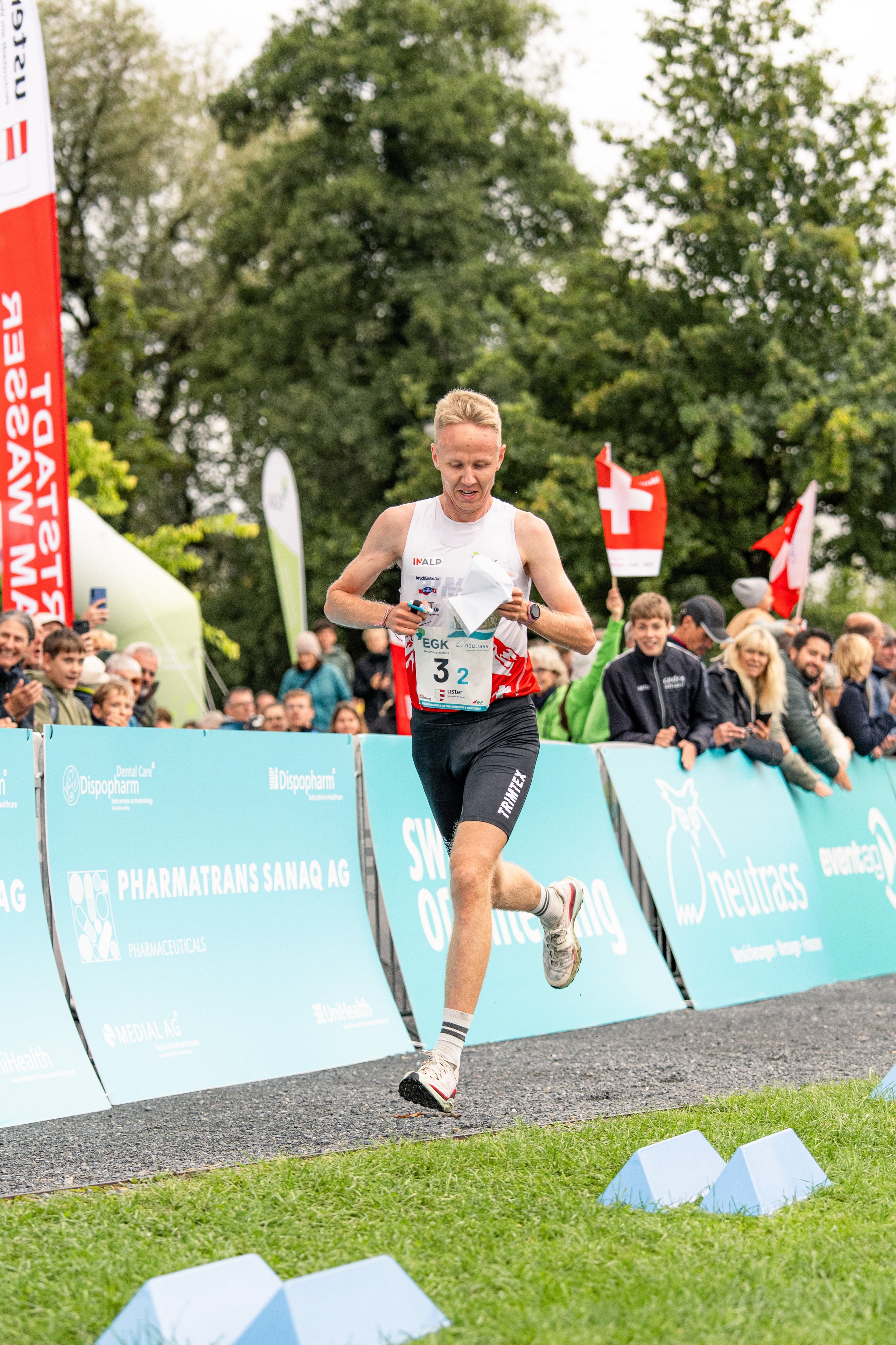 Uster. Orientierungslauf-Weltcup. Sprintstaffel. Strecke 1 und 4: 3.8km, 16 HM, 17 Po.; Strecke 2 und 3: 4.4km, 20 HM, 21 Po. 1. Schweden 1 (Alva Sonesson, Jonatan Gustafsson, Martin Regborn, Hanna Lundberg) 58:34 Min. 2. Schweiz 1 (Natalia Gemperle, Timo Suter, Tino Polsini, Simona Aebersold) 00:03 Min. zurück. 3. Norwegen 1 (Victoria Haestad Björnstad, Eirik Langedal Breivik, Kasper Harlem Fosser, Pia Young Vik) 00:14. 4. Finnland 1 (Inka Nurminen, Akseli Ruohola, Tuomas Heikkilä, Venla Harju) 00:15. 5. Frankreich 1 (Maëlle Beauvir, Guilhem Verove, Mathias Barros Vallet, Cécile Calandry) 00:36. 6. Tschechien 1 (Jana Peterova, Jakub Glonek, Tomas Krivda, Tereza Rauturier) 01:09. Ferner: 9. Schweiz 3 (Martina Ruch, Matthias Kyburz, Fabian Aebersold, Deborah Stadler) 01:55. 10. Schweiz 4 (Inès Berger, Daniel Hubmann, Benjamin Wey, Corina Hüni) 02:10. 17. Schweiz 2 (Eline Gemperle, Riccardo Rancan, Joey Hadorn, Lilly Graber) 03:14.
