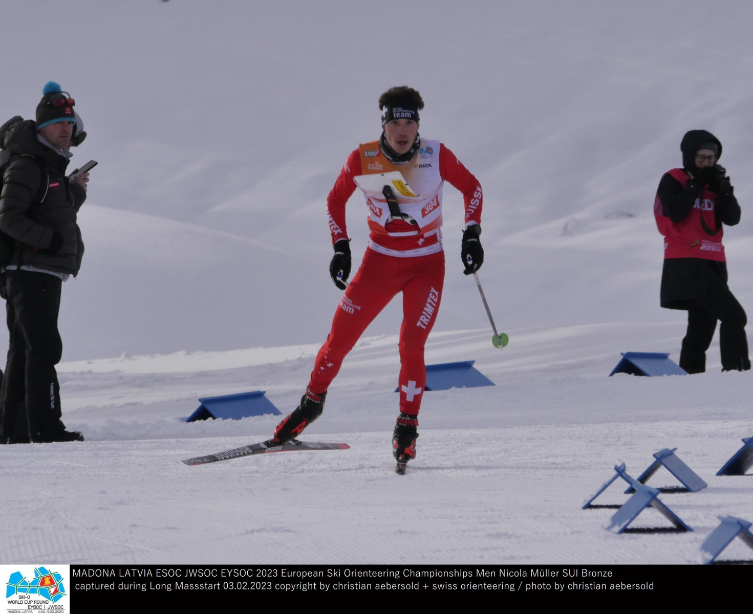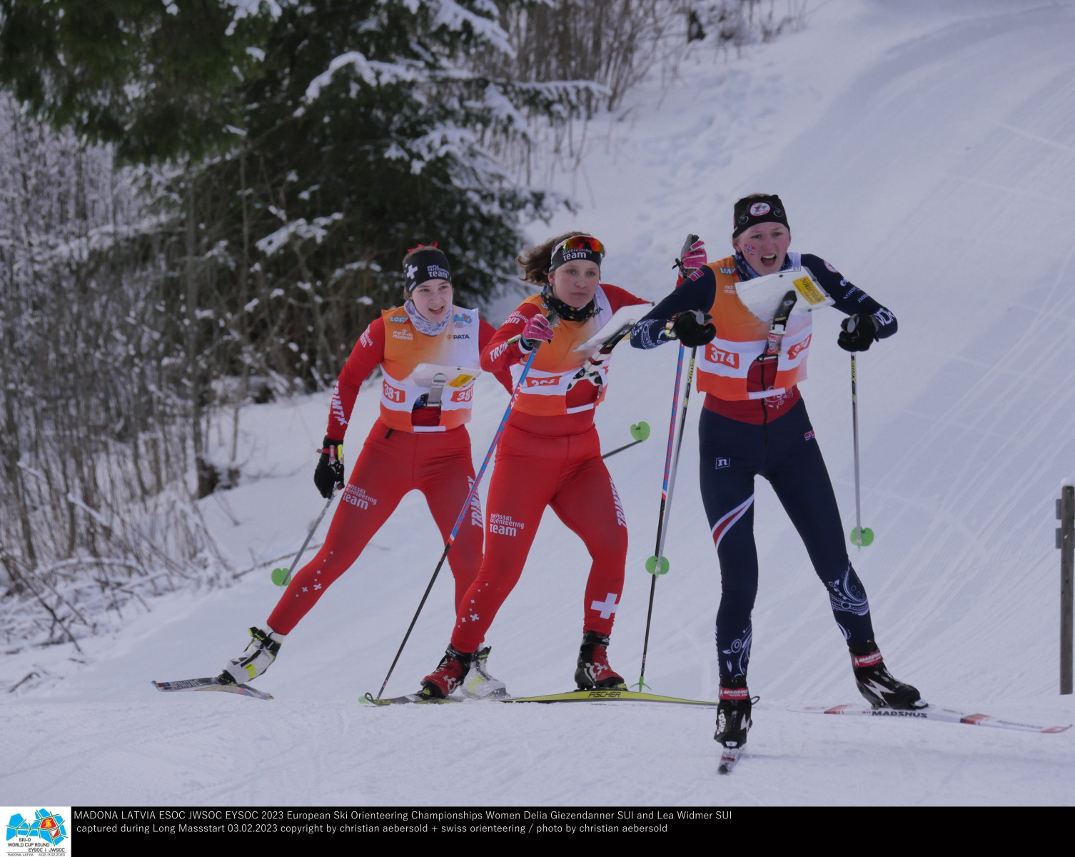 Lavio Müller berichtete an der Jugend-EM von einem turbulenten Rennen: «Unterwegs übersah ich auf der Karte einen Posten. Als meine Konkurrenten diesen Posten stempelten, war ich komplett verwirrt, liess sie ziehen und musste mich neu orientieren. Danach konnte ich die Spitzengruppe wieder einholen und lag beim zweitletzten Posten auf Rang 2, als ich mit den Ski zweimal im Geäst einfädelte und so die ganze Gruppe passieren lassen musste». So blieb dem Einsiedler «bloss» Rang 6, 48 Sekunden hinter dem lettischen Seriensieger Ritvars Lepeskins. Materialpech verzeichnete Andri Gujan, welcher gleich zu Beginn im Massenstart-Getümmel den Stock brachte, was den Bündner aus dem Konzept bracht. Es resultierte nach einem Steigerungslauf der 14. Rang. Jules Hamel wird 23., Janik Burki 27.