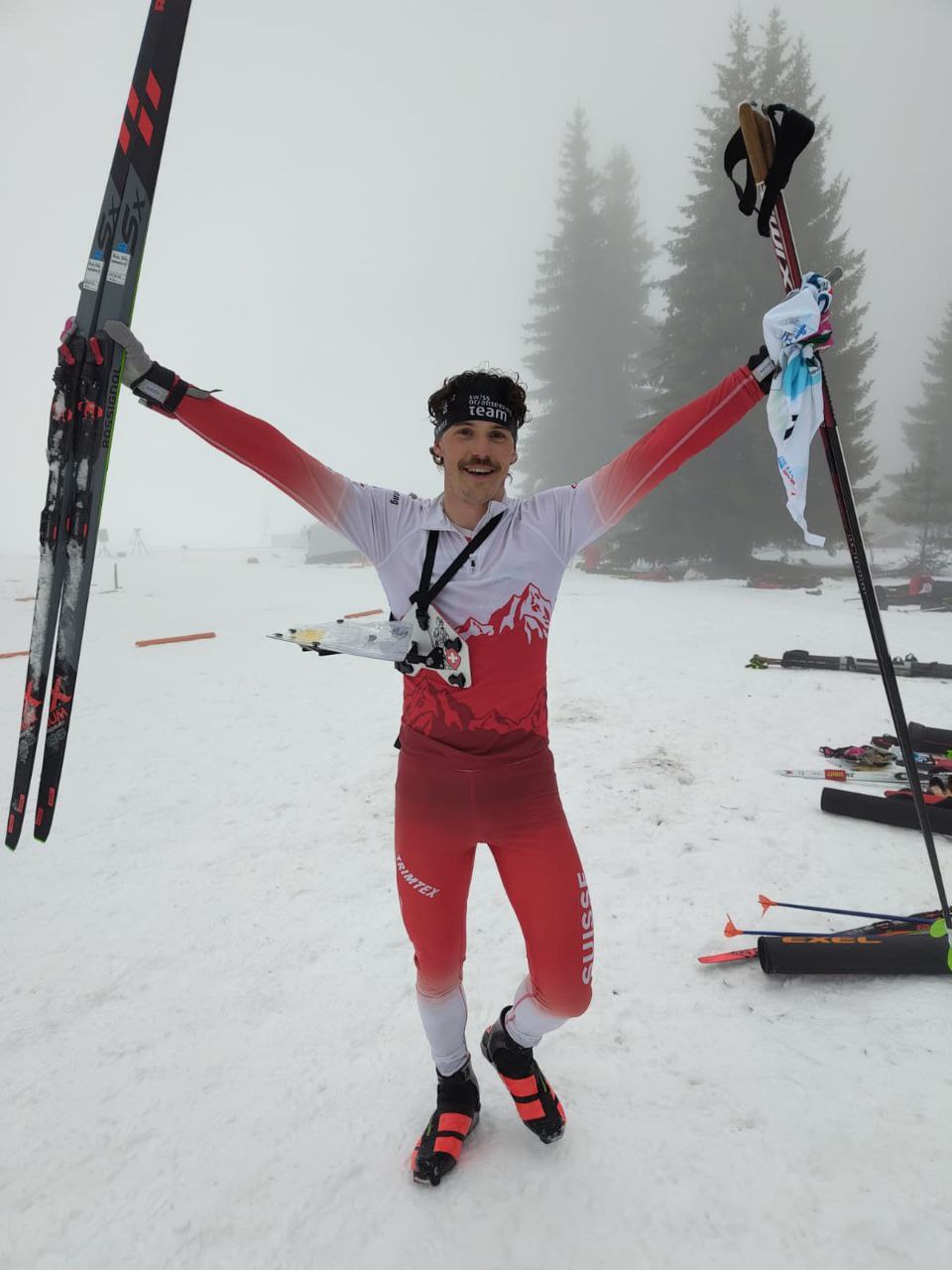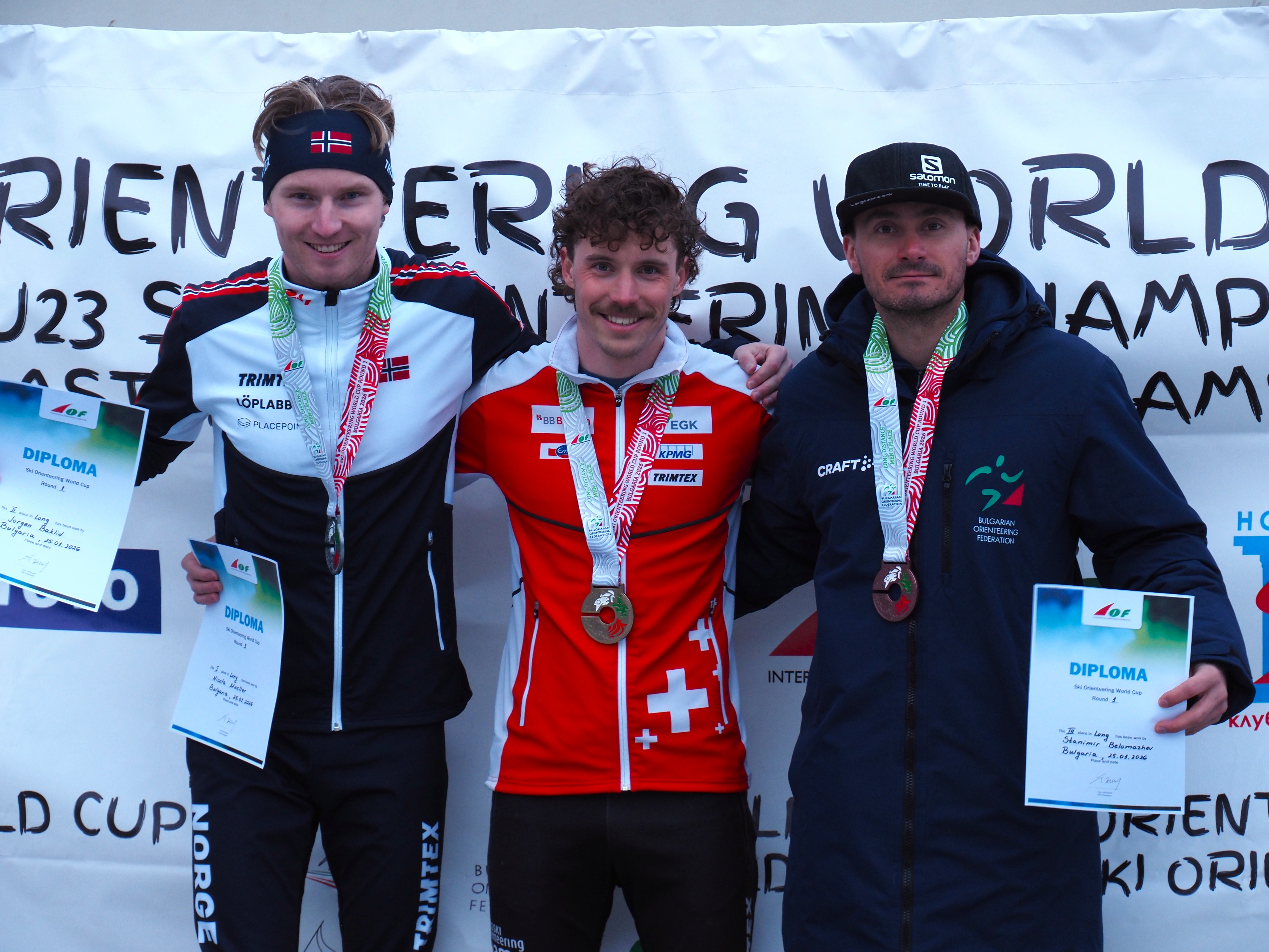 «Ich bin sehr gut weggekommen», beschreibt Müller seine Startphase. Ab Mitte der ersten Runde ist er ausser seltenem Sichtkontakt zu Stanimir Belomazhev, der dritter wird, komplett allein unterwegs. Im dichten Nebel macht Müller mehrere kleine Flüchtigkeitsfehler, die es aber dank seiner physischen Bombenform verträgt. «Irgendwie hat das am Schluss einfach alles zusammengepasst», strahlt der Einsiedler. Gegen Ende des Rennens läuft nur noch Jörgen Baklid zwischen Müller und dem Sieg. Müller sieht eine Alternativroute zu der von Baklid gewählten. Es gelingt ihm damit den Norweger einzuholen, zu überholen und einen knappen Vorsprung von 4 Sekunden ins Ziel zu sprinten. Und damit Schweizer Ski-OL Geschichte zu schreiben.