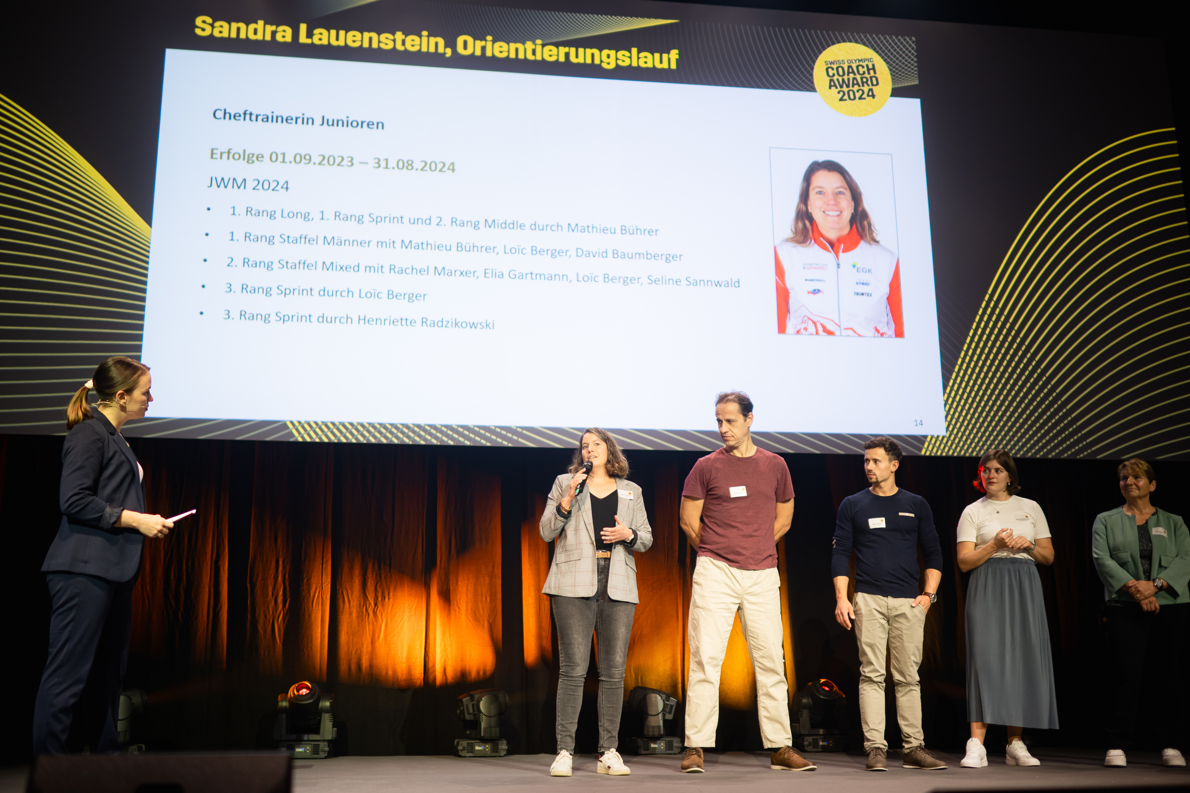 Seit 2012 ehrt Swiss Olympic mit den Swiss Olympic Coach Awards den Einsatz von Nachwuchstrainerinnen und Nachwuchstrainern. In diesem Jahr zeichnete der Dachverband des Schweizer Sports anlässlich der Feier in Magglingen mit Sandra Lauenstein die abtretende Cheftrainerin des Junior*innen-Kaders von Swiss Orienteering aus. Sie gewinnt in der Kategorie Individualsport.