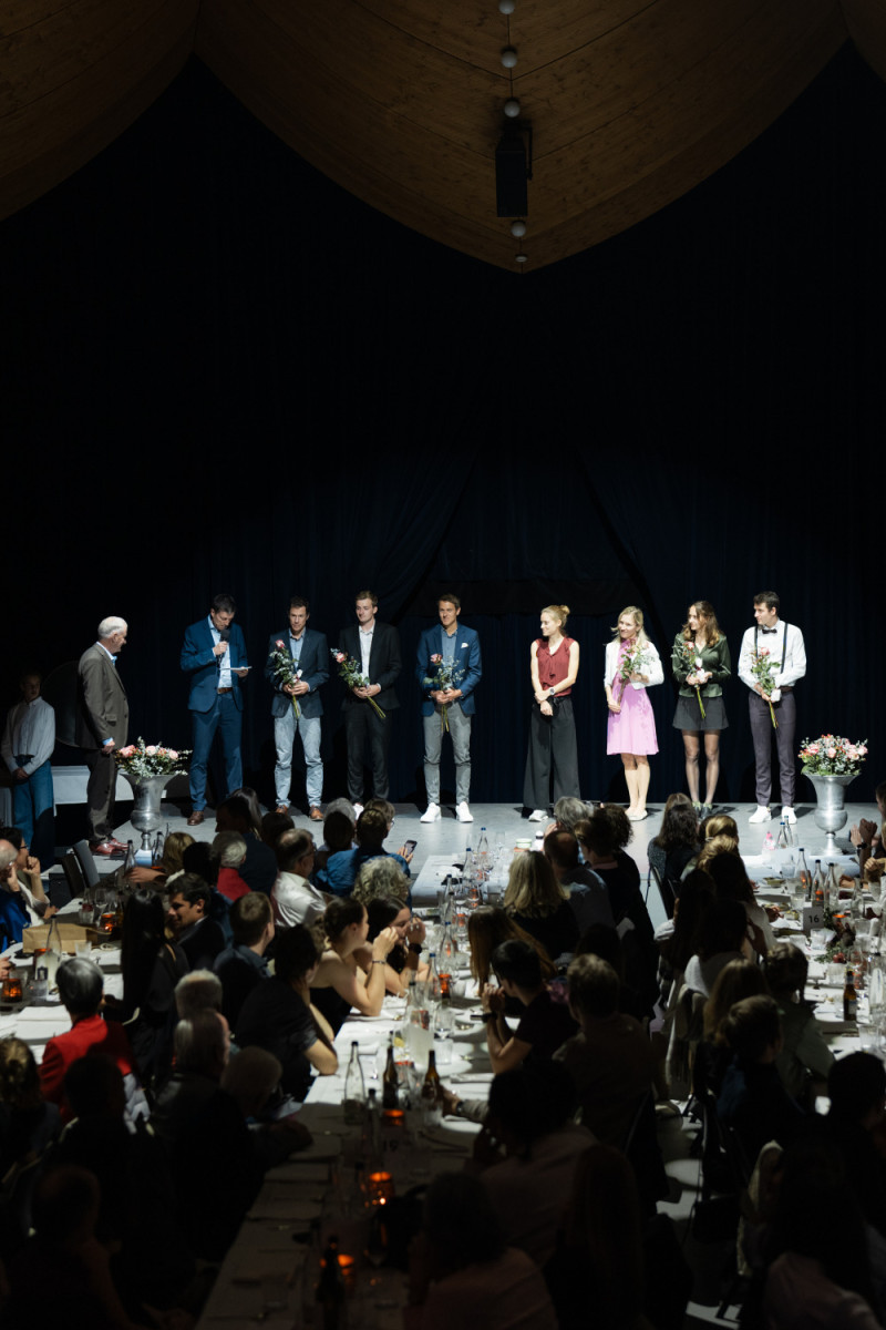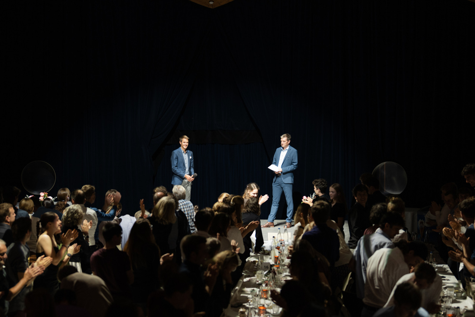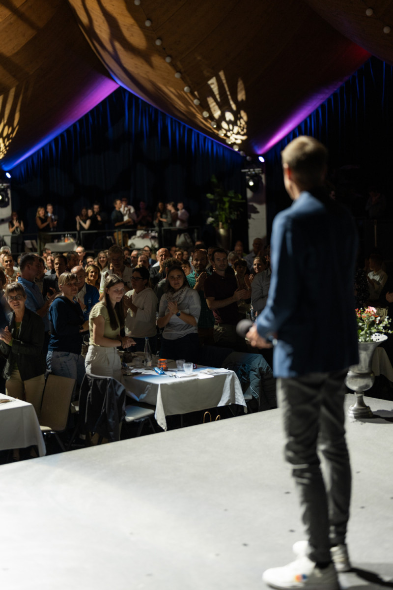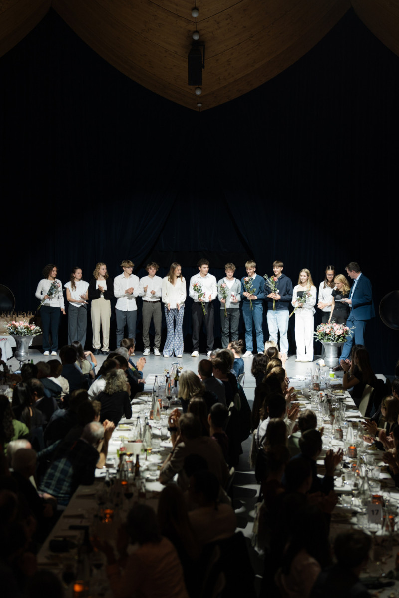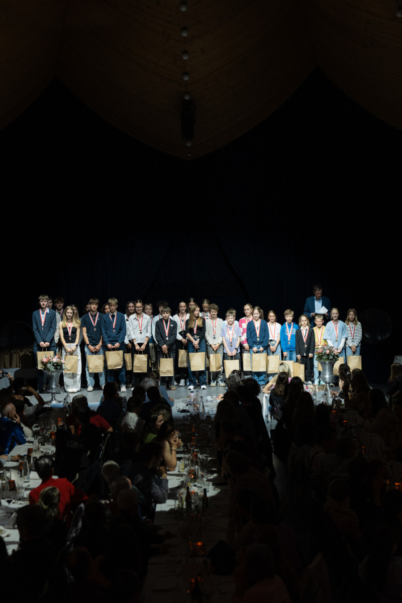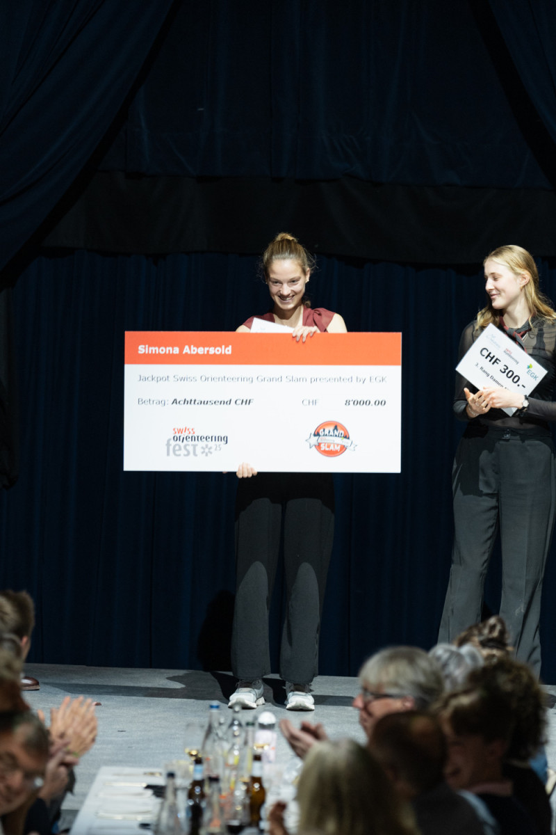 Nach dem sportlichen und tierischen Einstieg in den Abend öffneten sich die Türen des magischen Zauberhuts. Schön gedeckte Tische und funkelnde Lichter erwarteten die Gäste des Swiss O-Festes. Eine rundum würdige Location, um die vielen herausragenden Leistungen dieses Jahres zu ehren: von Breitensport über Nachwuchs-Erfolge bis hin zu internationalen Elite-Medaillen. Durch den Abend führte der Moderator Beat Liechti, für die musikalische Unterhaltung sorgten Raphibello und Talpa Hill. Ein besonderer Programmpunkt des Abends stellte die Verabschiedung von Matthias Kyburz dar. Kleine Kilometerschilder begleiteten die Gäste des O-Festes den ganzen Abend, bis schliesslich bei Kilometer 42 Matthias Kyburz auf die Bühne geholt wurde. Mit einem lachenden und einem weinenden Auge verabschiedete sich die OL-Community von «Chlai» und bedankte sich mit Standing Ovations für alle schönen Emotionen, die sie mit ihm erleben durfte.