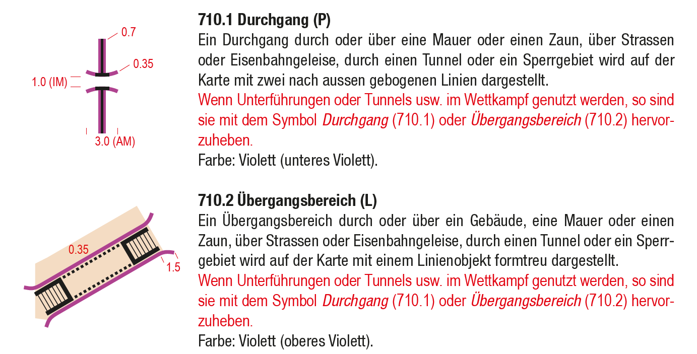 Si un élément 3D (2 niveaux de course l'un sur l'autre) doit être utilisé dans le tracé du parcours, assurez-vous que la situation sur la carte soit claire à 100 % (selon la brochure suisse de course d'orientation "Standard international pour les cartes de course d'orientation en sprint - ISSprOM 2019" marquage avec le symbole 710.1 ou 710.2). Si nécessaire, un extrait de carte avec une description doit être publiée dans les instructions afin que la course soit équitable et que les "coureurs locaux" ne soient pas les seuls à pouvoir interpréter la représentation sur la carte.