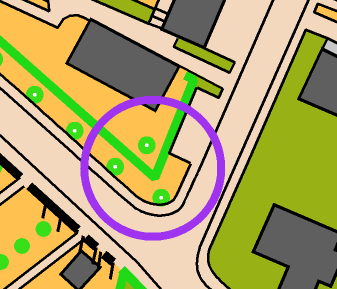 Dans la mesure du possible, il convient d'éviter les angles aigus dans le tracé du parcours. Ils peuvent simplifier le parcours si le coureur connaît déjà la direction du parcours ainsi qu'une partie du trajet jusqu'au prochain poste. Ne placez pas les postes tout au fond d'une "impasse", mais dans la partie avant.