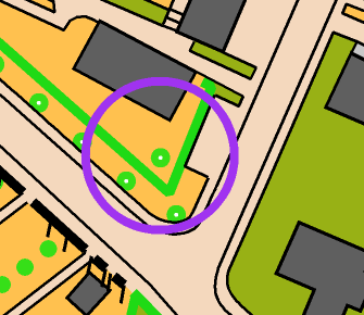 Il est préférable que les postes soient situés à des endroits clairs, qui sont en fait compréhensibles même sans description de poste. Par exemple, l'impression du parcours doit indiquer clairement de quel côté du mur/haie/etc. impraticable se trouve le poste. Le défi technique d'un parcours de sprint devrait principalement résulter de la section et pas seulement de l'emplacement du poste. Ainsi, il faut accorder une grande valeur à une section difficile au lieu de tendre un piège avec l'emplacement du poste.