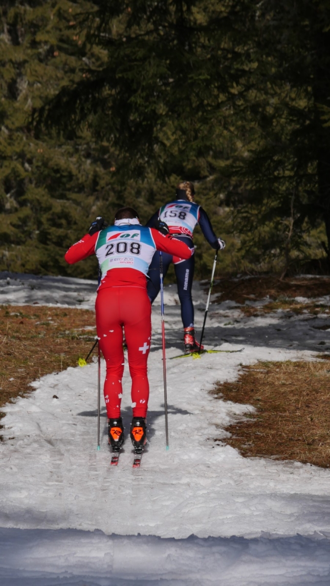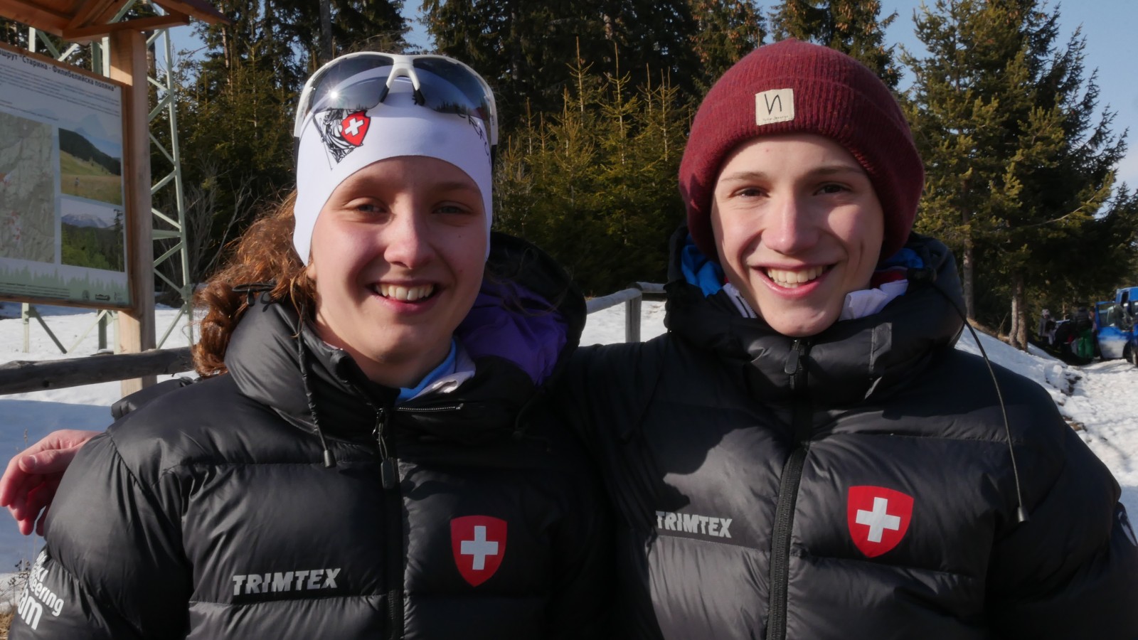 • Delia Giezendanner (links) und Gian-Andri Müller (rechts) an der Langdistanz der Jugend-EM in Velingrad (Bulgarien), 07.02.2018 (Foto Christian Aebersold)