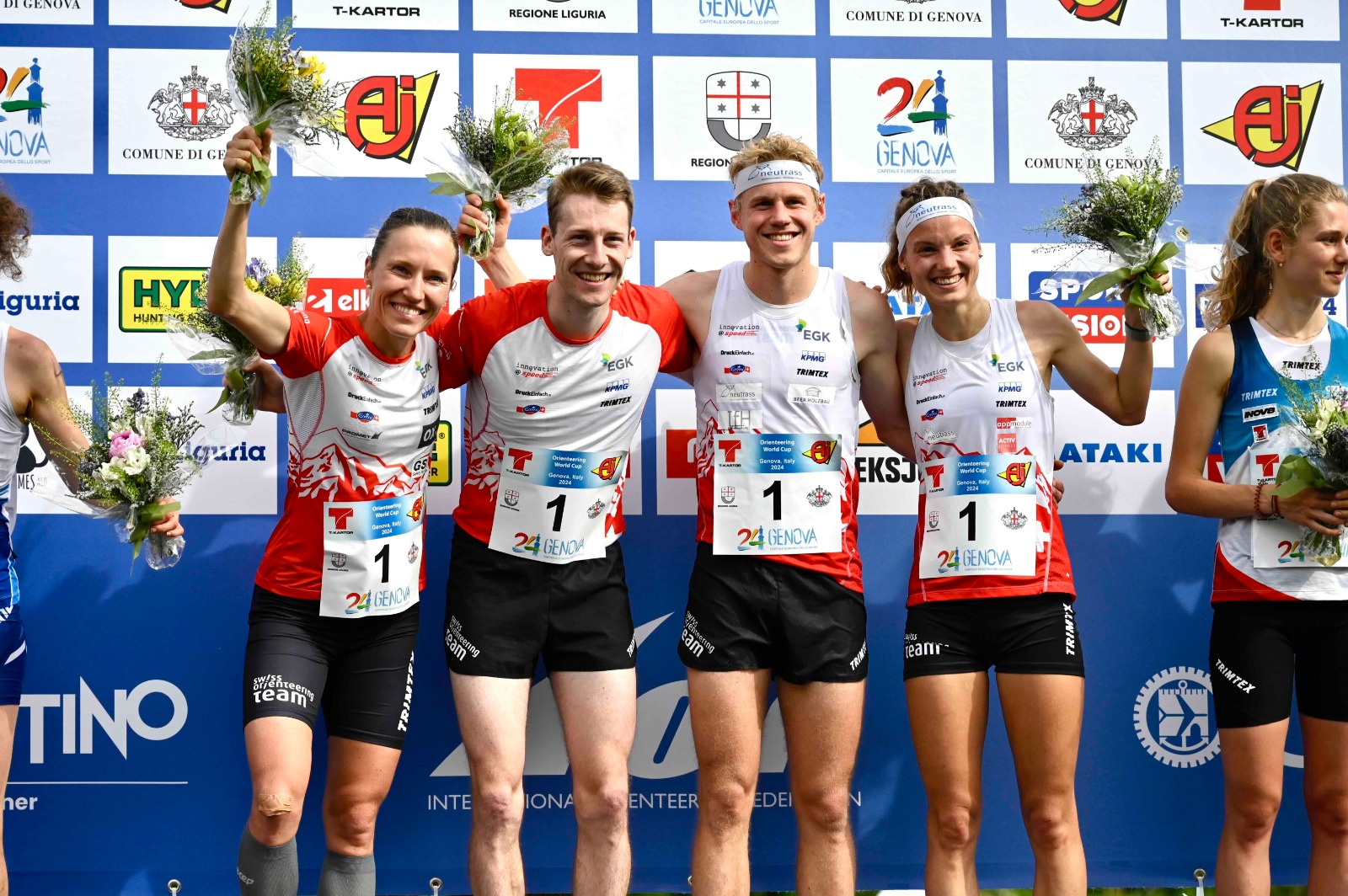 La squadra svizzera si aggiudica la vittoria nella sprint relay della coppa del mondo di C.O. a Nervi, vicino a Genova. Natalia Gemperle, Riccardo Rancan, Joey Hadorn e Simona Aebersold vincono davanti a Finlandia e Repubblica Ceca dopo una tratta finale spettacolare.