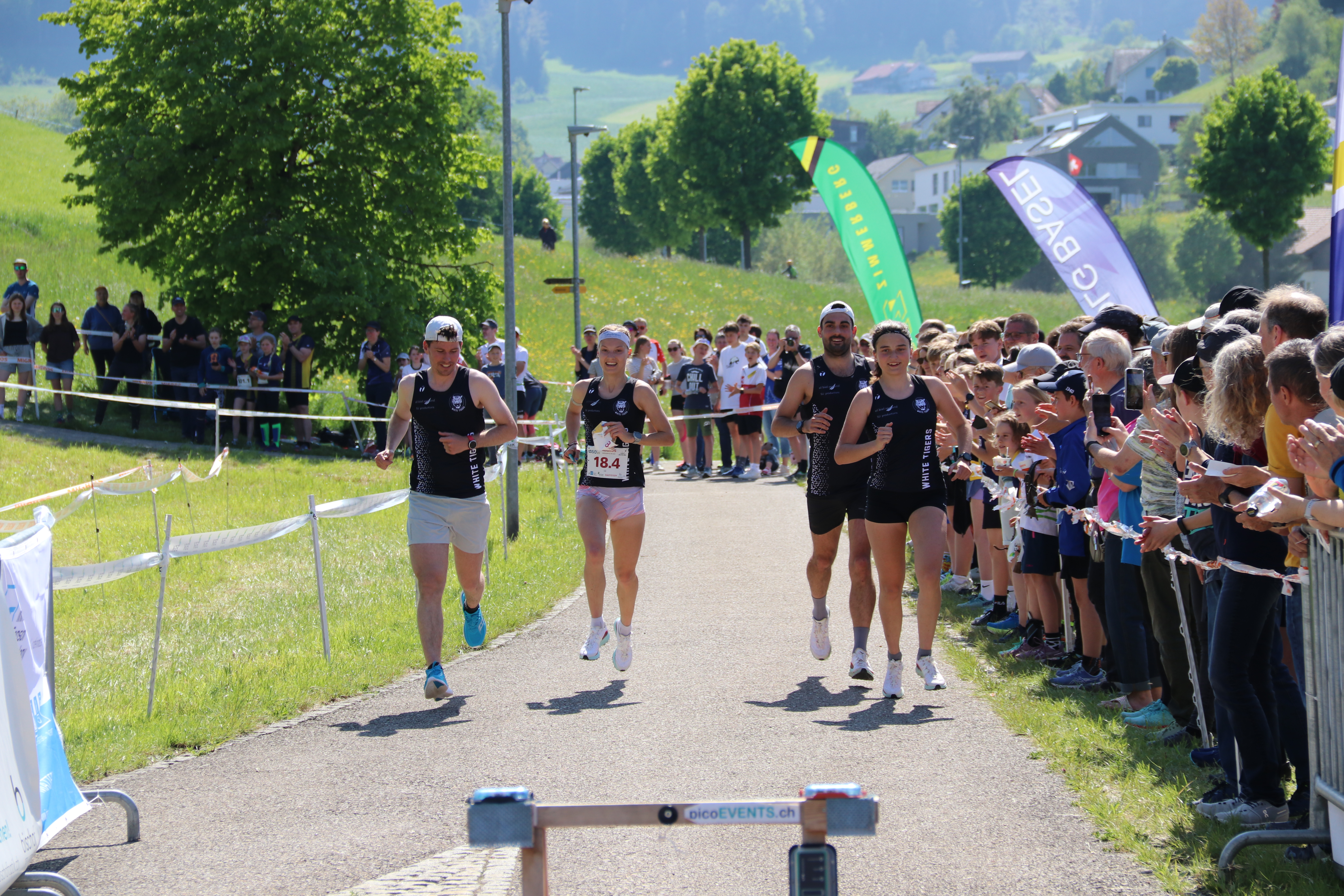Laura Ramstein, ultima atleta dell'OLV Baselland, ha condotto a lungo la gara. Dietro di lei, Simona Aebersold (ol.biel.seeland White Tigers) ha iniziato la sua gara per recuperare – è partita in sesta posizione, con un ritardo di 1:37 minuti. Alla fine, è riuscita a vincere con 31 secondi di vantaggio, relegando la squadra dell'OLV Baselland al secondo posto e Natalia Gemperle al terzo. Tuttavia, poiché la sua squadra composta da OLK Argus, OL Regio Olten e Hiidenkiertäjät con il corridore finlandese Hannes Nikkinen non ha ottenuto la medaglia, il bronzo è andato all'OLG Herzogenbuchsee con l'atleta finale Elena Howald-Roos.